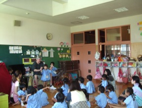 3才のころから英会話に行きましたが、最初は1人で教室に入れず、